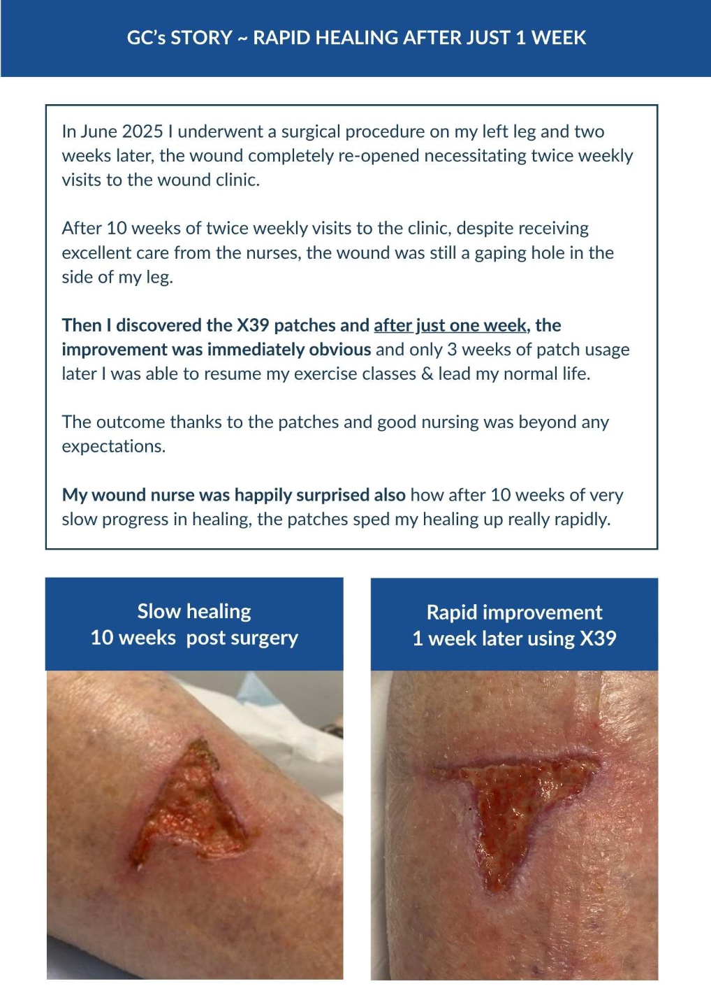 The patented X39 patch is a non-invasive, wearable patch designed to activate your body’s natural healing processes.Â